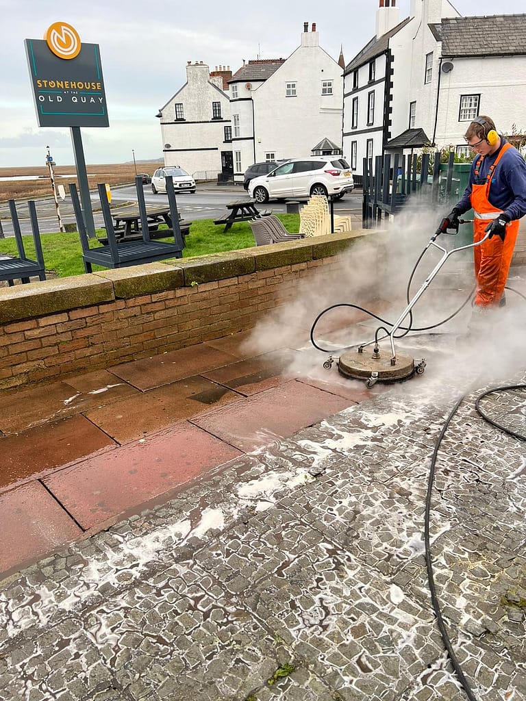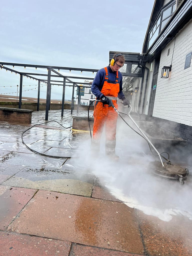 All dirt, staining and chewing gum were removed from the paving, significantly improving both the appearance and usability of the beer garden.