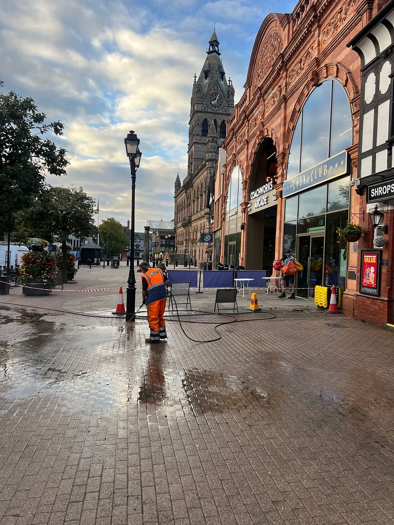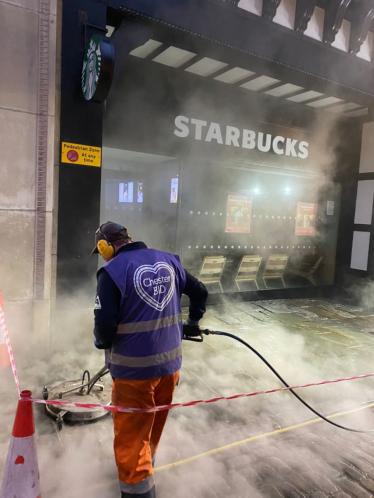 Rokjet was appointed in 2023 to deliver a city-wide chewing gum and hardstanding cleaning programme across Chester city centre.