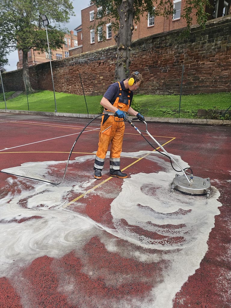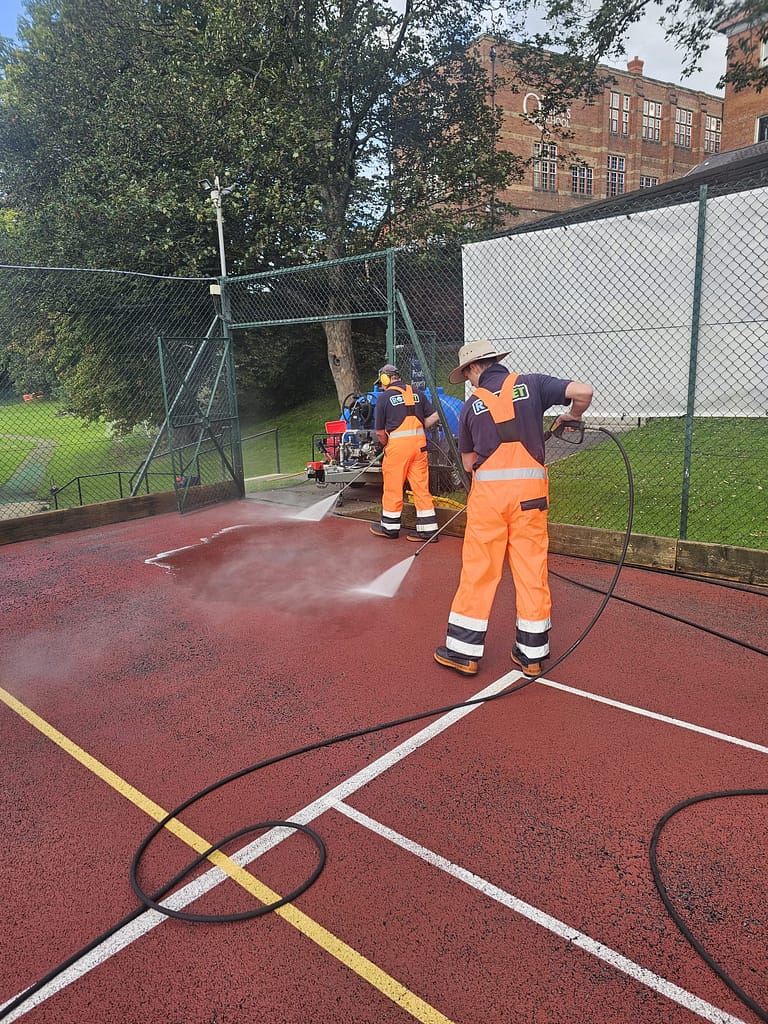 The netball courts had become dangerously slippery due to a build-up of biological growth, resulting in moss forming across the playing surface.